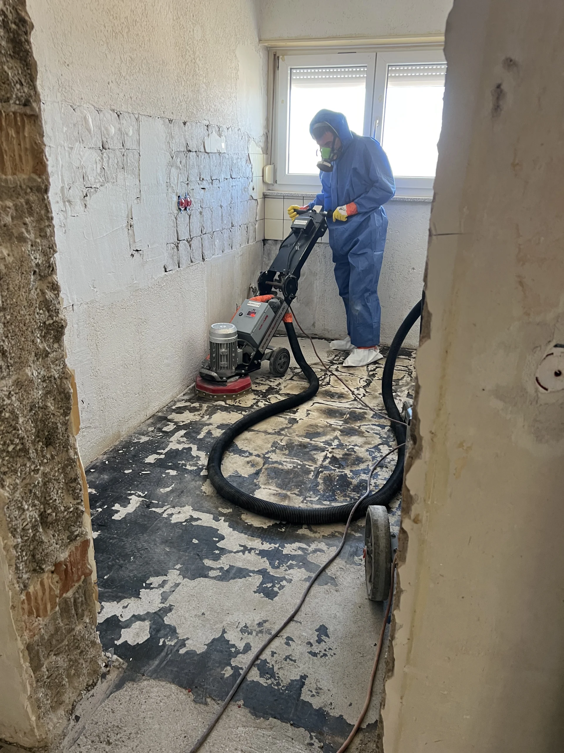 Im Rahmen zahlreicher Sanierungsmaßnahmen haben wir umfangreiche Arbeiten zur Asbestsanierung von Asbest-Bodenbelägen erfolgreich umgesetzt. Dabei setzen wir unser zugelassenes BT-Verfahren ein, das speziell für das Asbest-Floor-Flex-Bodenfräsen und Asbest-Kleberfräsen entwickelt wurde.